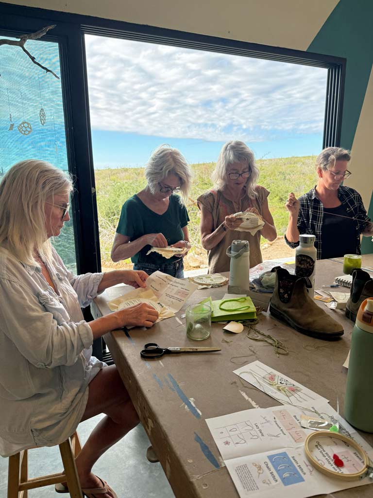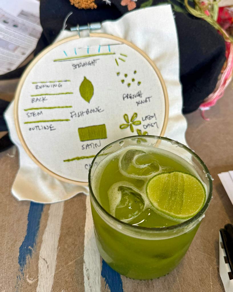 The workshop led everyone through basic stitches along with pro-tips and then we dove into creating desert floral designs onto our bandanas. Everyone took their projects and supplies home to finish up. Oh yeah, and we had some delish spicy cucumber margaritas to accompany the day. So much fun!