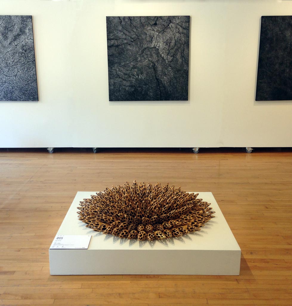 The Hive Series Installation is officially set up at (106) Gallery in Grand Rapids for ArtPrize2015! It was quite a venture getting nearly 200 fragile pieces wrapped, boxed, crated and shipped across the country only to have the gallery staff rely on really detailed instructions from me to get the whole piece installed. They did a beautiful job assembling each piece and I’m so pleased with the exhibit. Here are a few gallery shots taken just before ArtPrize officially opens. If you’re in the area, get out and see some art and rock the vote!