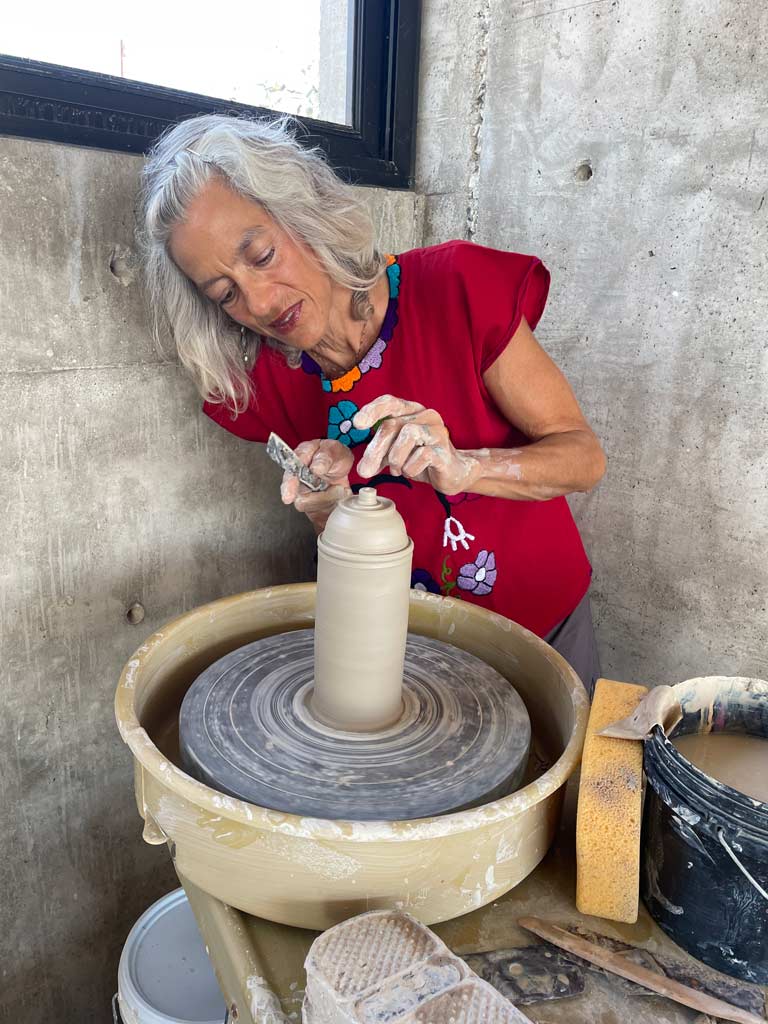 Assad’s work is in the permanent collections of The Fine Arts Museums of San Francisco, The Ceramic Research Center at Arizona State University Museum, and The Penn State Fulbright Scholar Collection, and is included in Garth Clark’s Shards, Kevin A. Hluch’s The Art of Contemporary Pottery, and Lark Books‘ 500 Teapots and 500 Pitchers. Her paintings can be found locally at Galeria Militar in central Todos Santos as well as by appointment at her studio in Las Playitas.