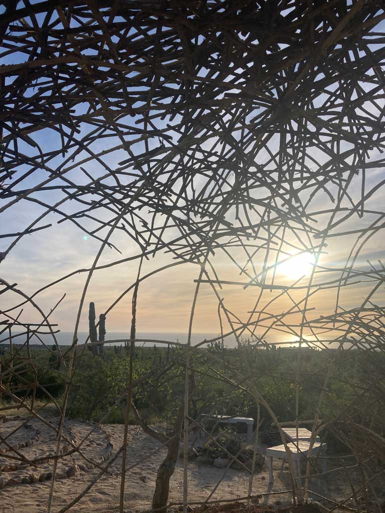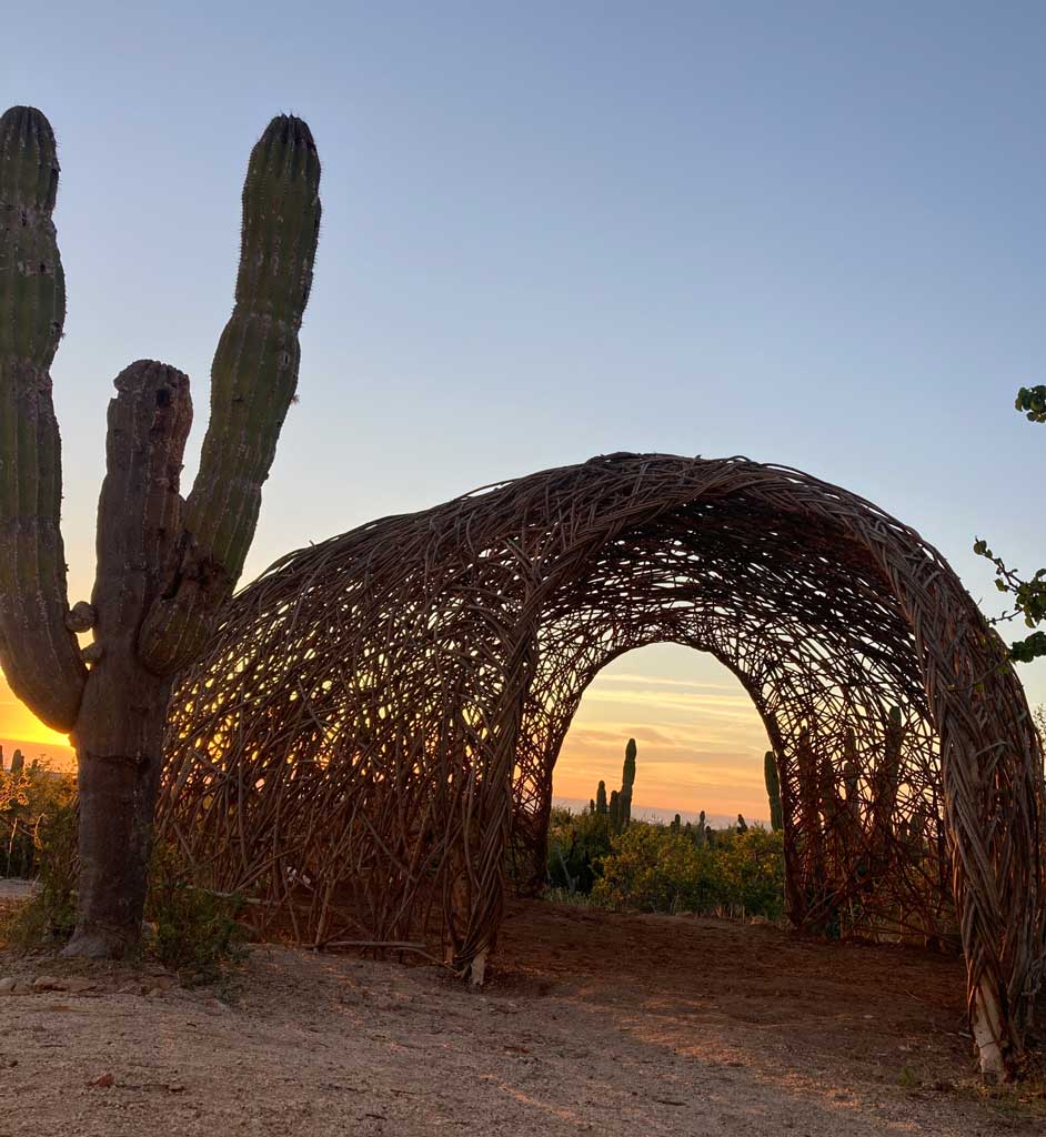 The sculpture garden just got a little bit cooler with the addition of our new nest! El nido has been a work in progress over the past few weeks and it was just recently finished. Javier and Julietta of Arte con Madera del Desierto worked their magic weaving palo de arco into this amazing structure. We’ll be adding a table and benches to complete the shaded picnic area soon.